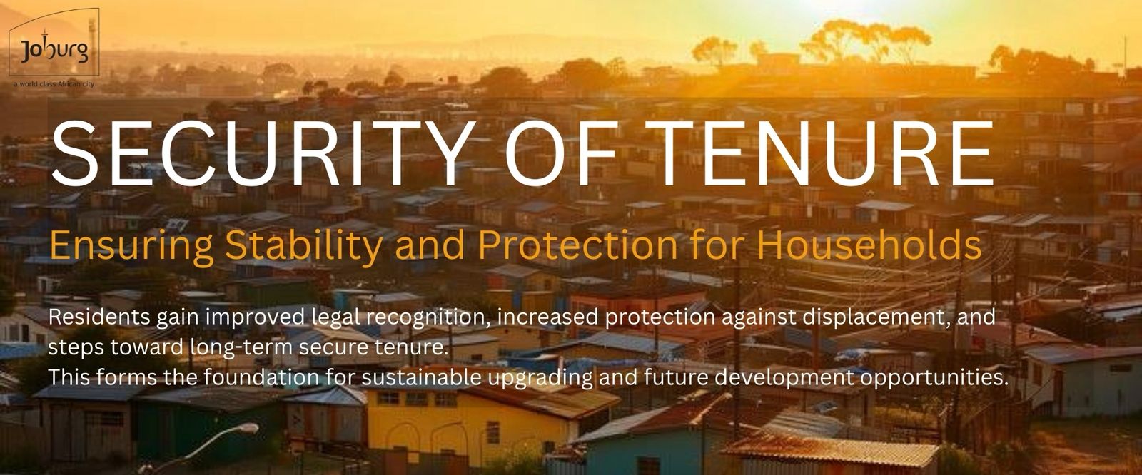 • Tenure Security: to enhance the concept of citizenship by recognising and formalising the tenure rights of residents within informal settlements;